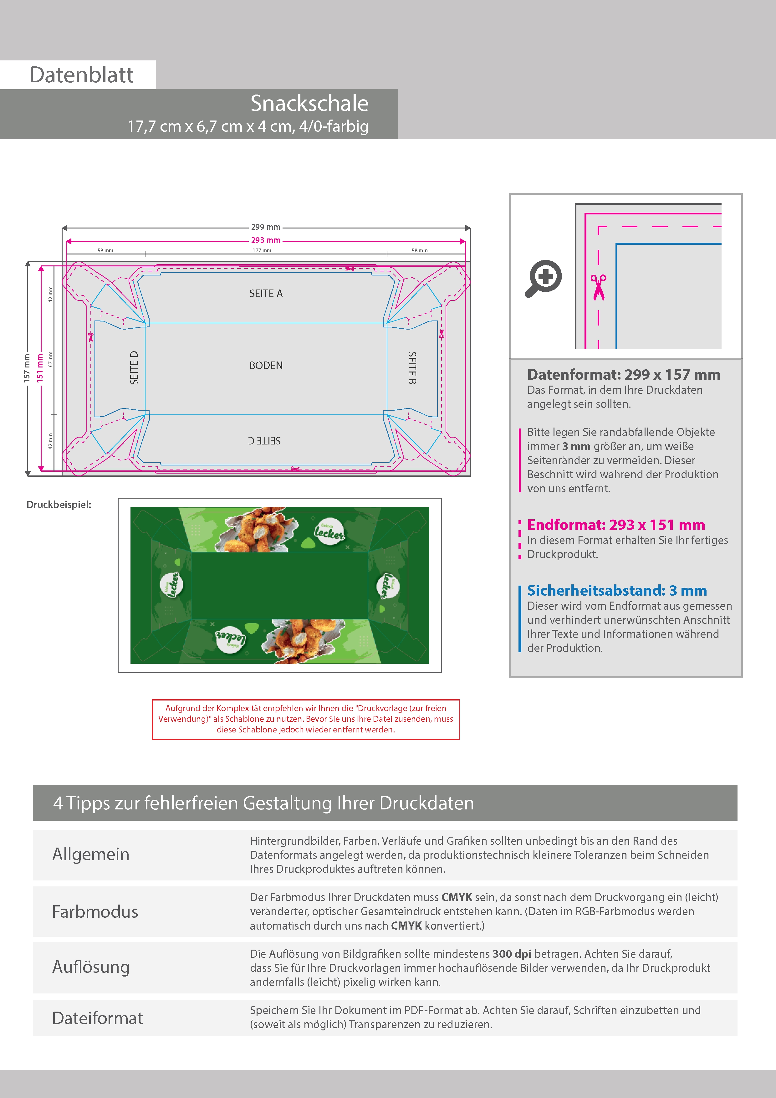 Snackschale (17,7 cm x 6,7 cm x 4 cm) einseitig bedruckt 4/0-farbig