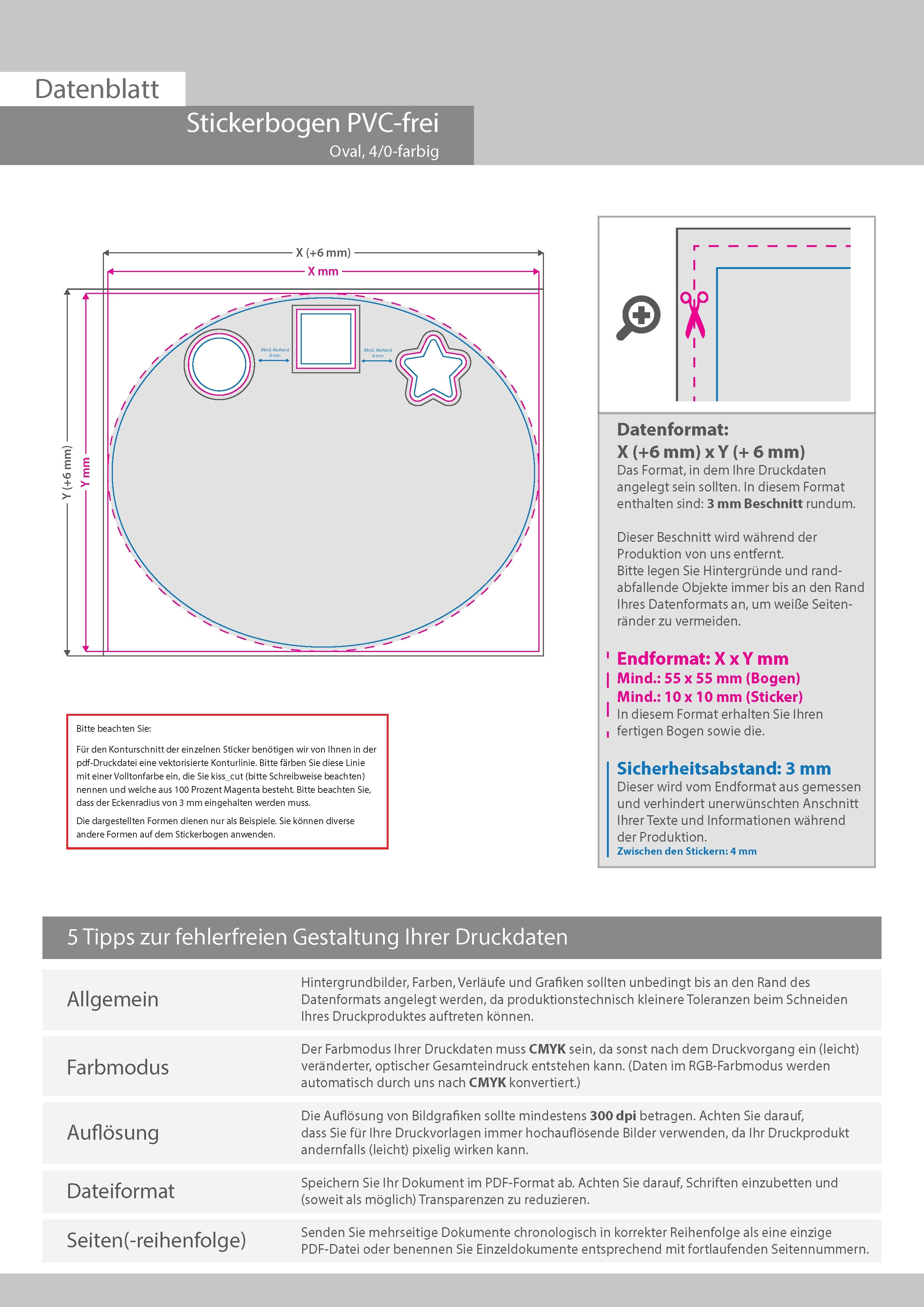 Stickerbogen PVC-frei, 4/0 farbig bedruckt oval (oval konturgeschnitten)